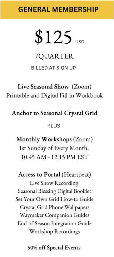 Each season members receive extra content after the show, including our seasonal blessing, a copy of the live notes, as well as downloadable phone wallpapers to carry the crystal grid with you wherever you go.